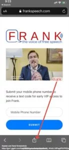 Step 1 – Visit – Frankspeech.com from the safari browser ( Note this method works only in the safari browser ) and Click on the share icon present on the bottom of the screen as shown in the image below