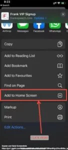 Step 2 – Click on ” Add to Home Screen “